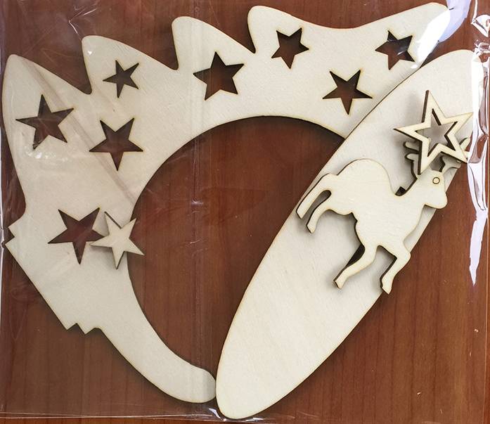 Houten ornament Kerstboom staander (20x24cm) + 1 Kerstbal + 1 willekeurig setje krimpfolies